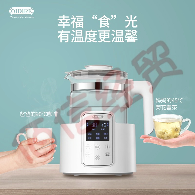 德國OIDIRE 恒溫水壺調(diào)奶器溫奶器 嬰兒熱水沖泡奶壺紫外線消毒玻璃水壺 316不銹鋼風扇降溫【殺菌款】 自營