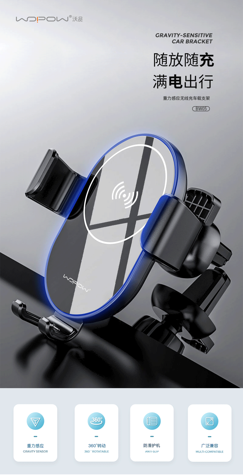 沃品(WOPOW)BW05 重力感應(yīng)無(wú)線充車載支架 360°旋轉(zhuǎn)車載無(wú)線充 黑色 自營(yíng)