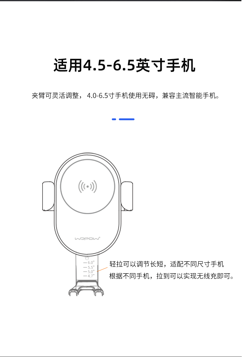· 可調(diào)根據(jù)手機(jī)大小調(diào)節(jié)無(wú)線充位置