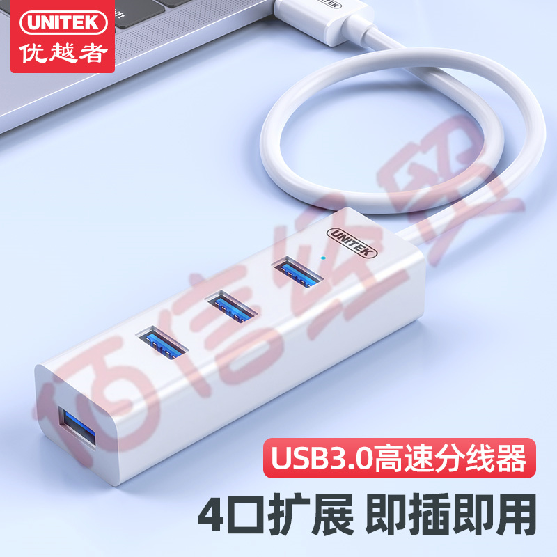優(yōu)越者 usb3.0分線器 高速4口拓展器 筆記本電腦一拖四轉(zhuǎn)換器多接口延長線帶電源口 白色 1.2米 Y-3089AWH 自營