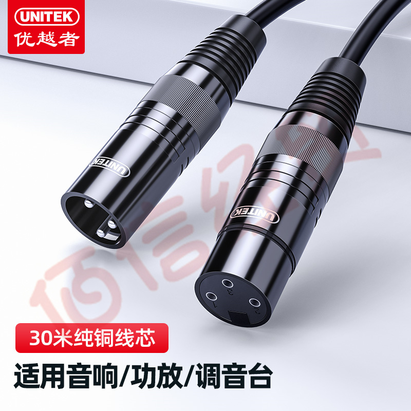 優(yōu)越者卡儂公對母高保真音頻連接線 K歌直播麥克風話筒延長轉接線 聲卡調(diào)音臺音箱功放卡農(nóng)線30米 C9041BK 自營