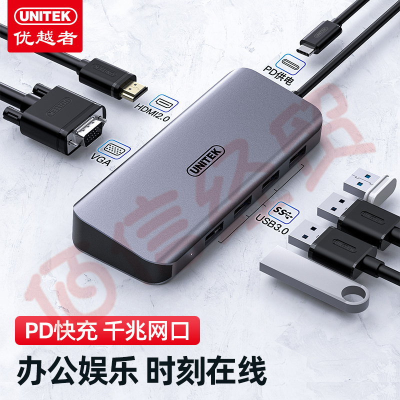 優(yōu)越者(UNITEK)Type-C擴展塢 USB-C轉(zhuǎn)HDMI轉(zhuǎn)換器4K投屏VGA拓展塢轉(zhuǎn)接頭雷電3分線器 D026C 自營