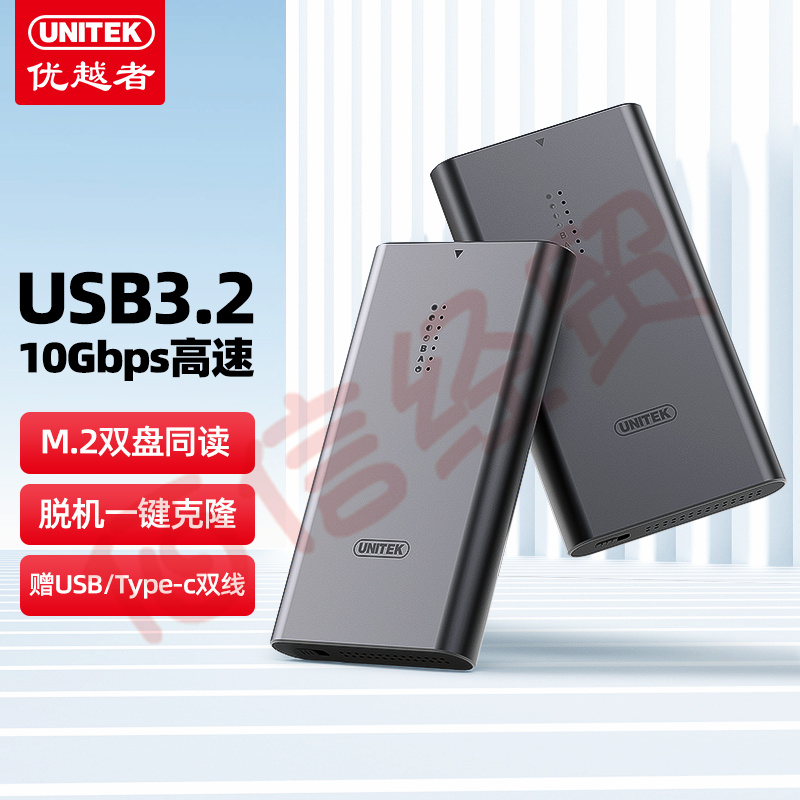 優(yōu)越者(UNITEK)M.2雙盤硬盤盒NVMe移動硬盤盒Type-C3.2接口SSD固態(tài)硬盤盒子筆記本電腦M2全鋁外置盒 S206A 自營