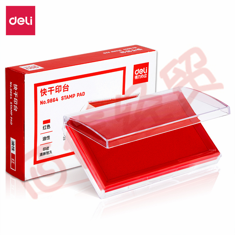 得力(deli)9864-137*88mm透明外殼方形快干印臺(tái)印泥 辦公用品 紅色 自營