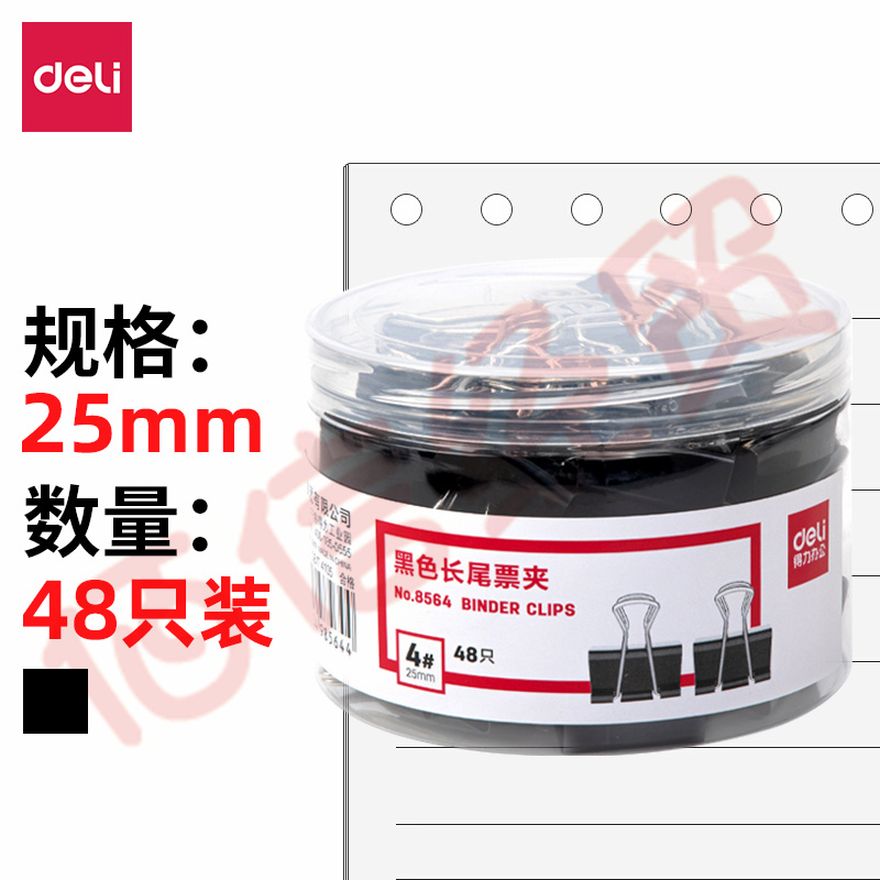 得力(deli)48只25mm黑色長(zhǎng)尾夾票夾 金屬燕尾夾票據(jù)夾子 辦公用品 中號(hào)8564 自營(yíng)