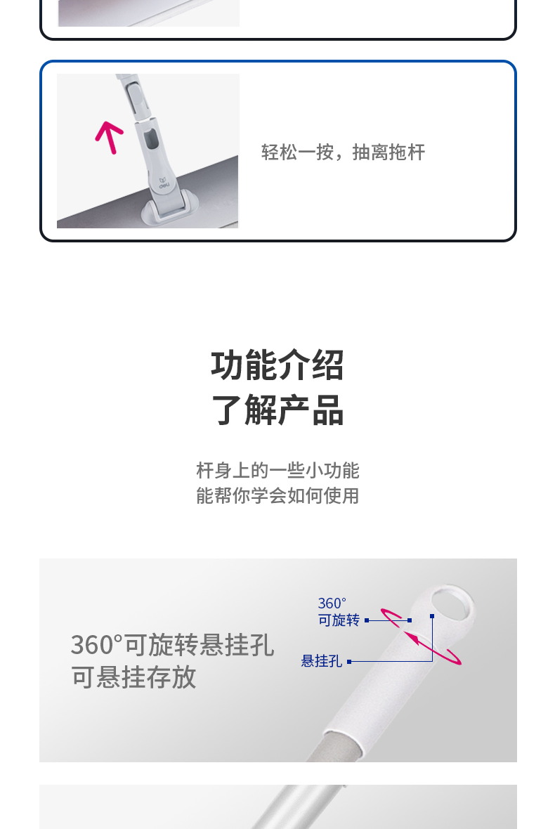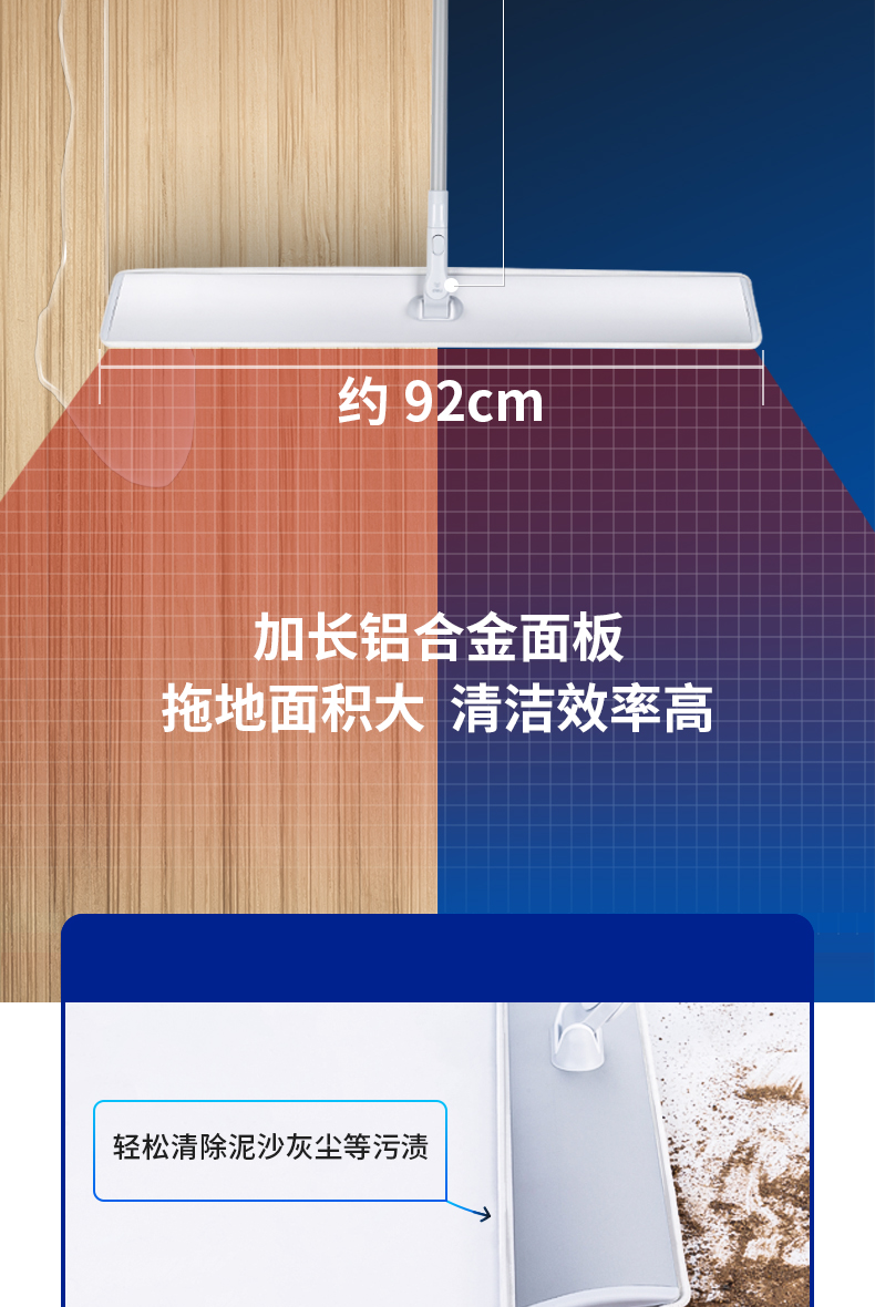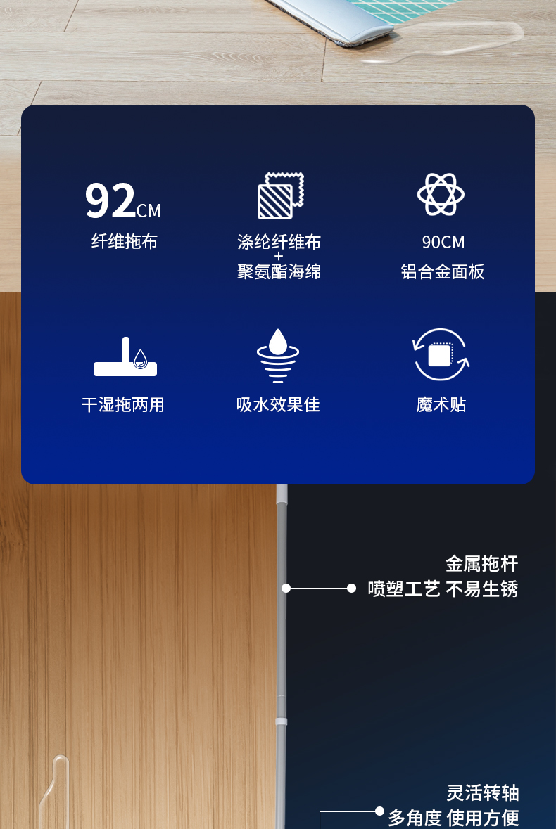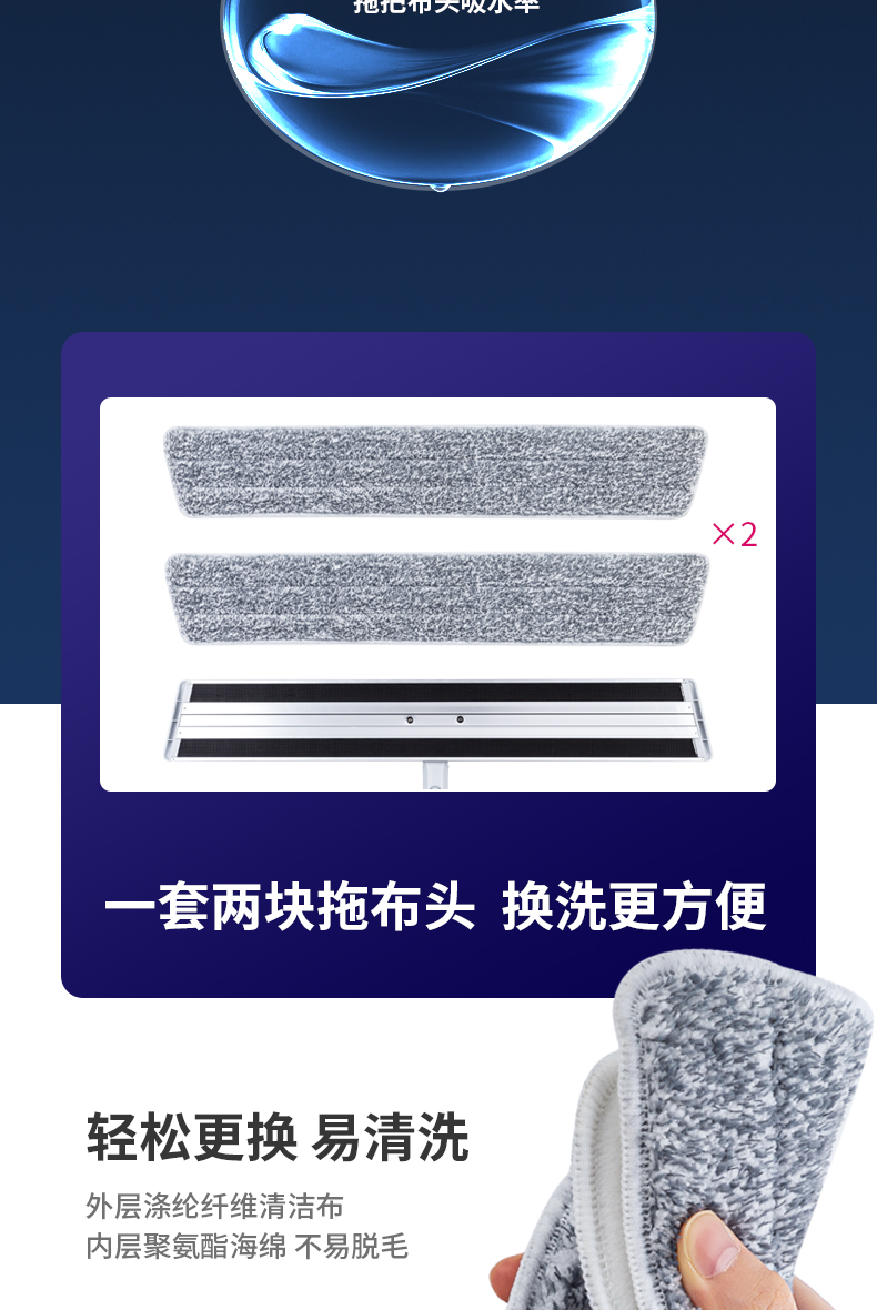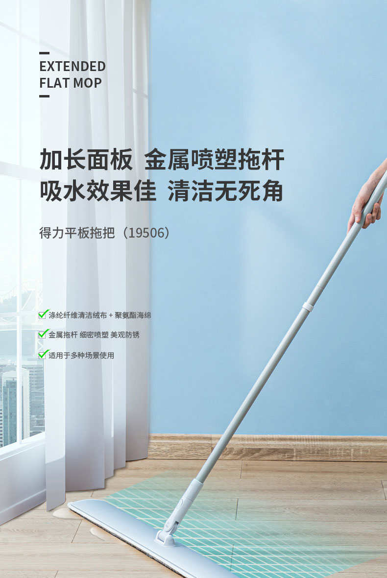 得力(deli)90cm平板拖把 高質(zhì)感鋁合金面板 魔術(shù)貼拖布設(shè)計(jì)易更換 拖布干濕兩用快速吸水 2塊拖布 19506 自營