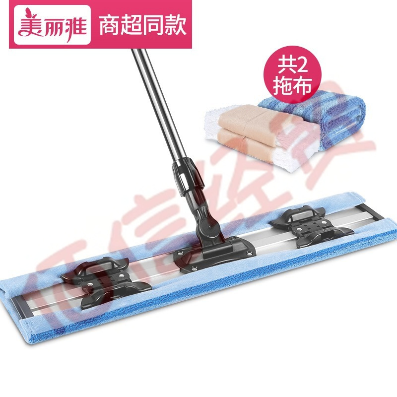 美麗雅 經(jīng)典平板拖把夾布地拖 干濕兩用木地板墩布 共2張拖把替換布