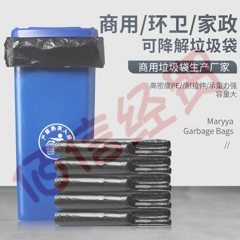 美麗雅 可降解加厚型物業(yè)商用垃圾袋 黑色環(huán)保塑料袋 100X110cm【厚1.6絲50只裝】(5個(gè)起售) 自營