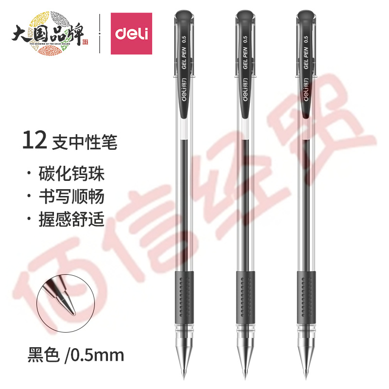得力(deli)0.5mm經(jīng)典辦公子彈頭中性筆 水筆簽字筆黑色12支/盒6600ES 自營(yíng)