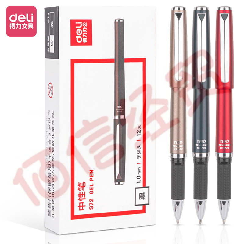 得力(deli)中性筆簽字筆 1.0mm子彈頭辦公水筆 加粗線幅水筆 黑色12支/盒S72 自營