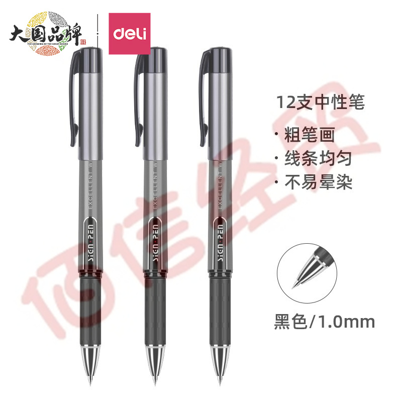 得力(deli)1.0mm辦公中性筆碳素簽字筆 辦公用品 12支/盒S73黑色 自營(yíng)