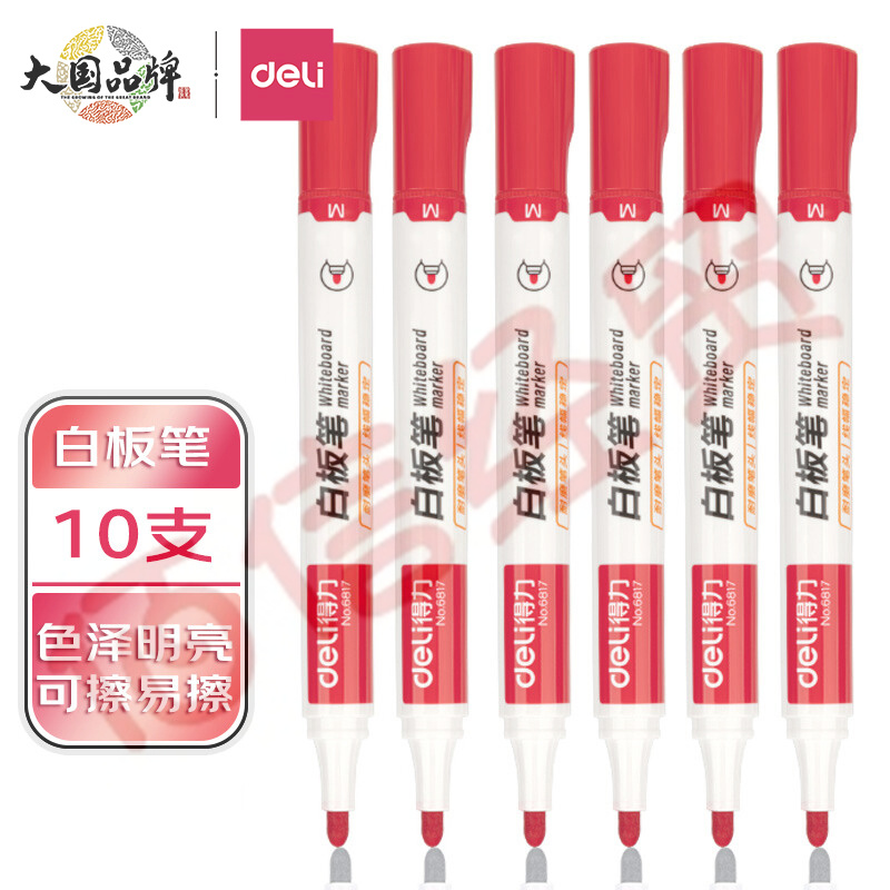 得力(deli)白板筆 色澤明亮可擦易擦 紅色10支/盒6817 辦公用品(新老款隨機(jī)發(fā)貨) 自營