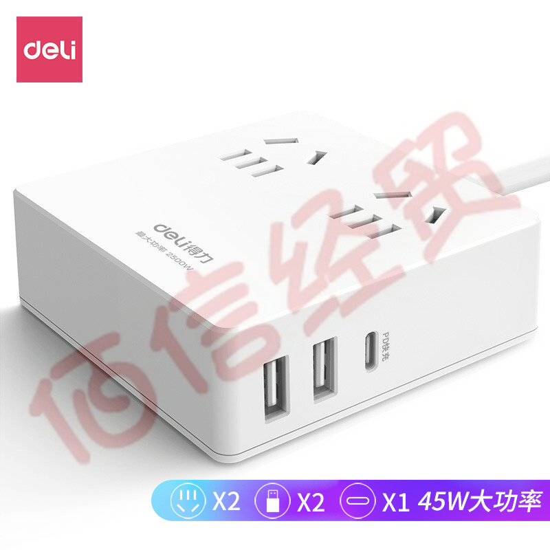 得力(deli)PD/QC快充插座(45W) 2USB+Type-C口 1.5米白 33650 自營(yíng)