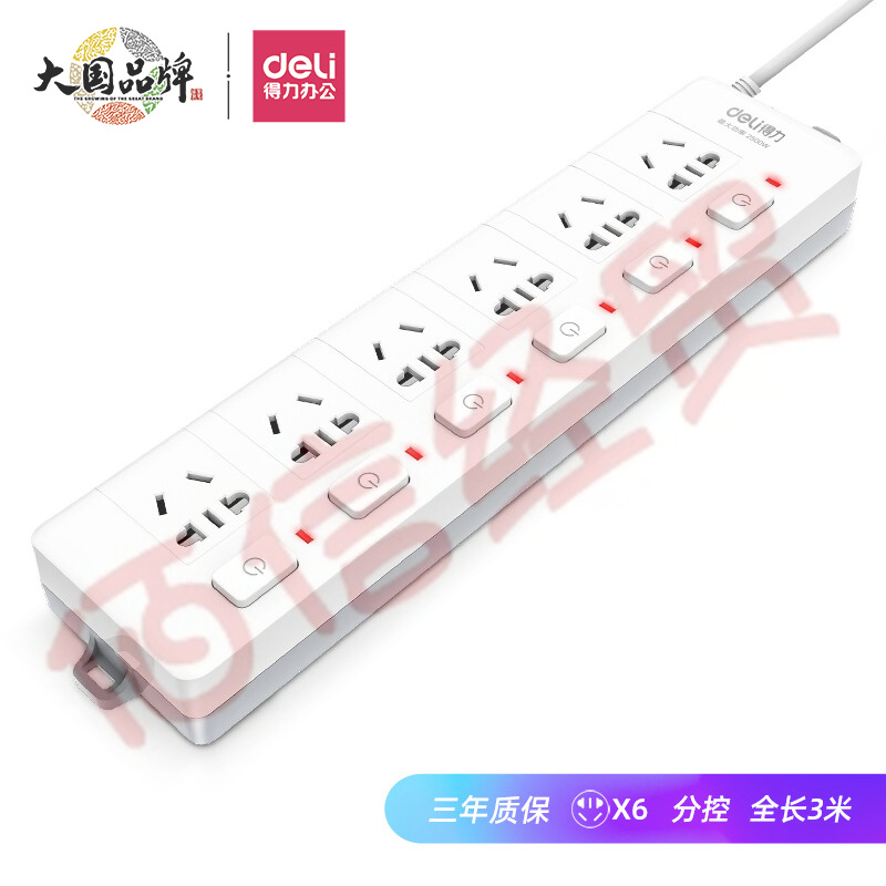 得力(deli)新國(guó)標(biāo)分控插座-6位獨(dú)立開關(guān) 全長(zhǎng)3米 3980-03 自營(yíng)
