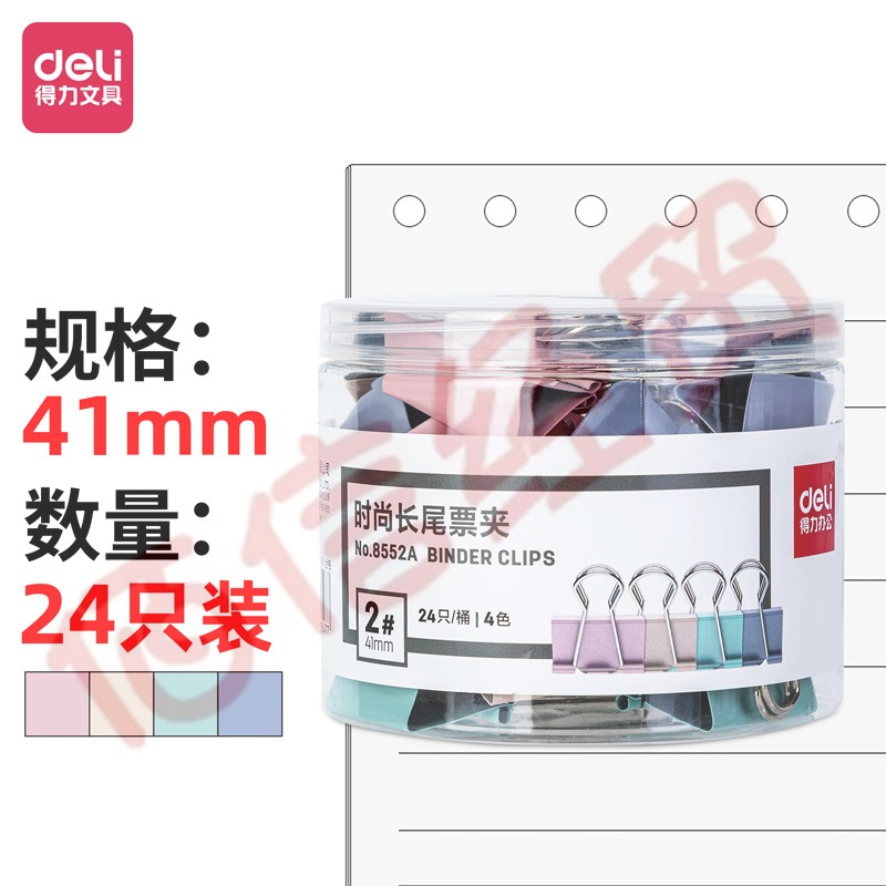 得力(deli) 長尾夾 8552A混色/24只(41mm) 自營