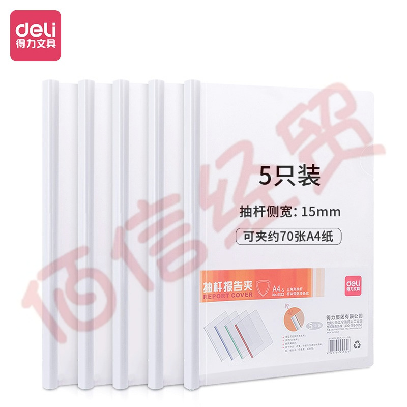 得力(deli)5532 A4加寬加厚15mm拉桿夾 透明抽桿文件夾報(bào)告夾 資料簡(jiǎn)歷夾 白色 5只/包 2包裝 自營(yíng)