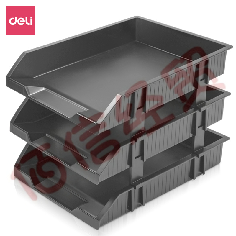 得力(deli)三層可調(diào)節(jié)收納文件座 自由拆卸組裝三層文件盤/文件框 資料整理收納桌面文件管理 黑色 自營
