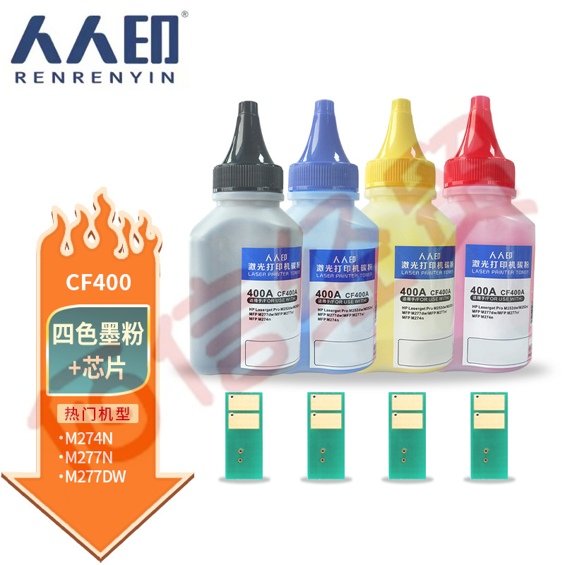 人人印 CF400A碳粉配套芯片 四色套裝(適用惠普HP CF500A CF510A CF410A CF400A ) 自營