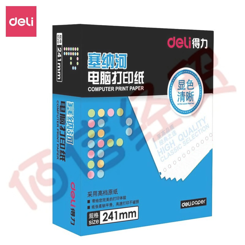 得力(deli)N241-2(1/3)白色不撕邊 塞納河電腦打印紙 二聯(lián)三等份【整盒全白】 自營(yíng)