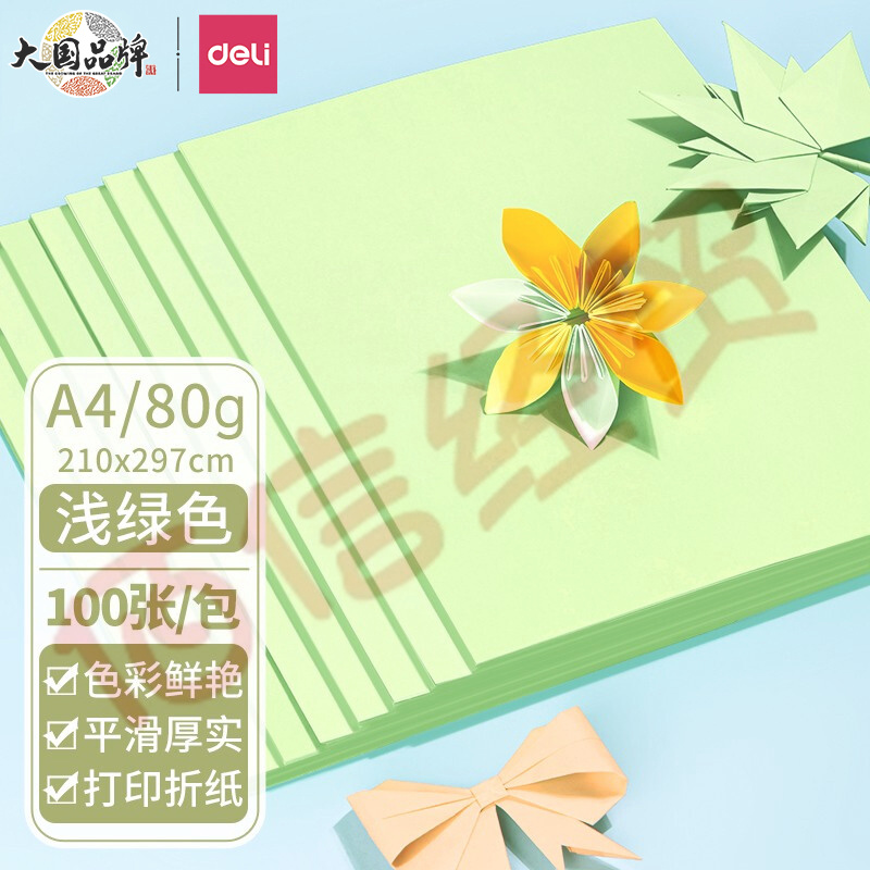 得力(deli)A4 80g淺綠色復印紙 彩色打印紙 兒童手工折紙剪紙彩紙 非硬卡紙 100張/包 7757 自營