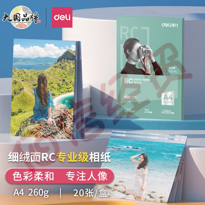 得力(deli)A4 260g細(xì)絨面RC專(zhuān)業(yè)相片紙 影樓專(zhuān)用照片打印紙 20張/盒 11843 自營(yíng)