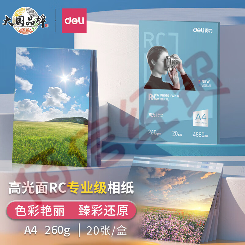 得力(deli)A4 260g高光面RC專業(yè)相片紙 影樓專用照片打印紙 20張/盒 11840 自營(yíng)