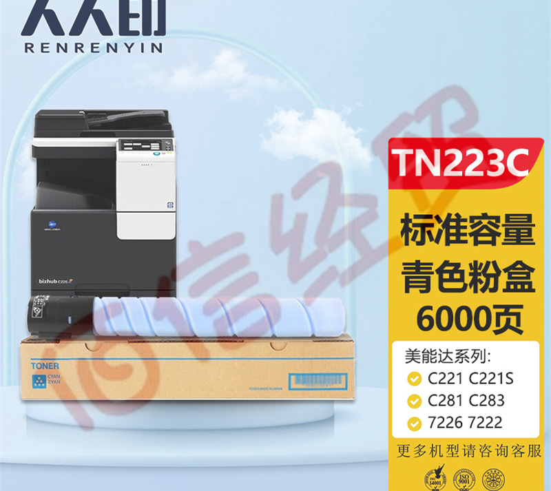 人人印 美能達TN223藍色墨粉盒 柯尼卡美能達TN224 C256 C266 C7222 C7226墨盒 柯美C226碳粉 (標準容量) 自營