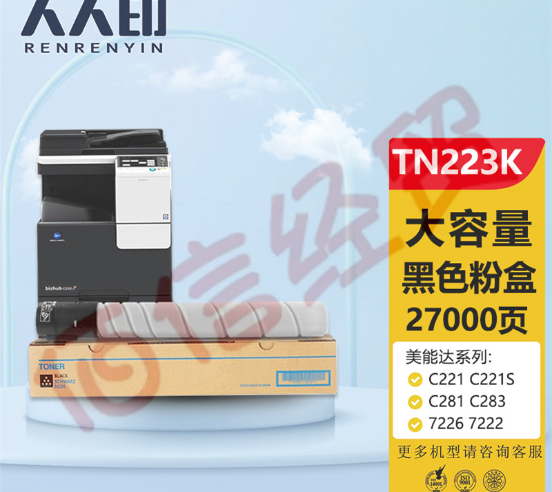 人人印 美能達TN223黑色墨粉盒 柯尼卡美能達TN224 C256 C266 C7222 C7226墨盒 柯美C226碳粉 (大容量) 自營