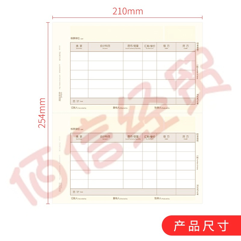 西瑪用友(UFIDA)A4金額記賬憑證紙 數(shù)外記賬憑證紙 用友軟件電腦憑證紙 KPJ102 自營