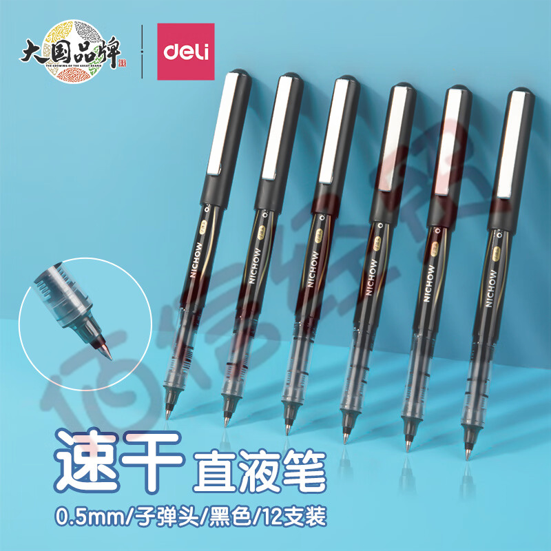 得力(deli)直液筆簽字筆 0.5mm子彈頭辦公商務(wù)中性筆走珠筆 水筆會(huì)議筆 黑色 12支/盒S656-Z1 自營(yíng)