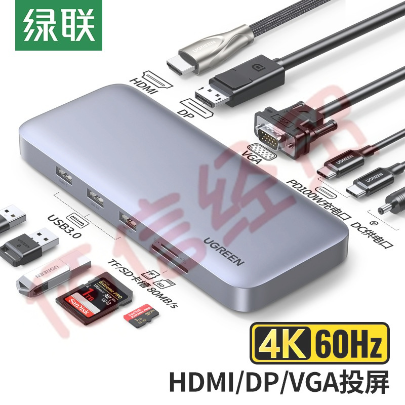綠聯(lián) Type-C擴(kuò)展塢適用蘋果Mac華為筆記本電腦USB-C轉(zhuǎn)HDMI VGA 3.0分線器拓展塢 9合1款拓展塢高清轉(zhuǎn)接頭 自營