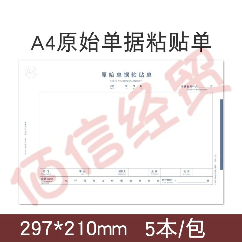 西瑪全A4原始單據(jù)粘貼單(橫版)8806 70克木漿原紙 297*210mm 50頁/本 5本/包 12包/箱(單包價(jià)-整箱售-拍12組) 自營