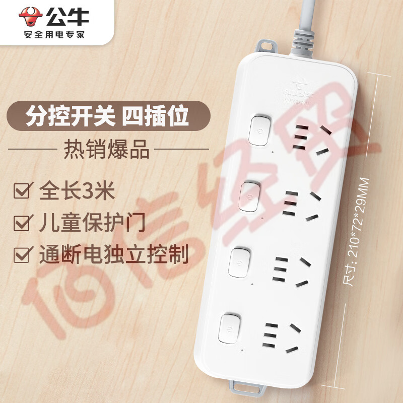 公牛(BULL)分控插座/插線板/插排/排插/接線板/拖線板 GN-B3043 4位分控全長3米 獨立開關(guān) 自營