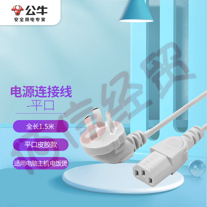 公牛(BULL)電源線 電腦主機(jī)電源連接線 國標(biāo)三孔品字尾平口 適用電飯煲機(jī)箱顯示器 全長1.5米 GN-J4A 自營