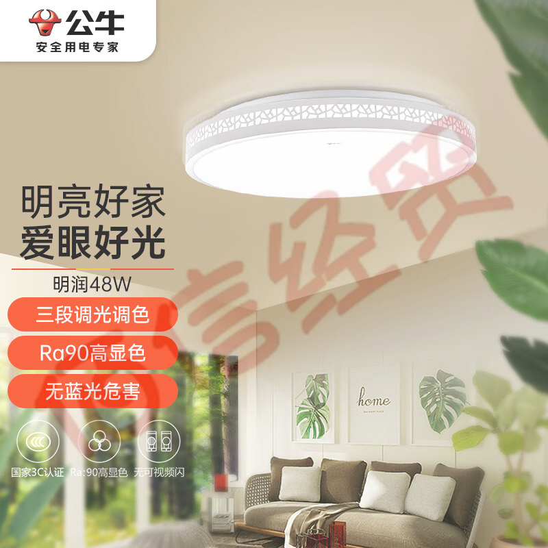 公牛(BULL)吸頂燈明潤圓形臥室燈北歐風簡約現(xiàn)代三段調(diào)光調(diào)色48W 475*93mm 自營