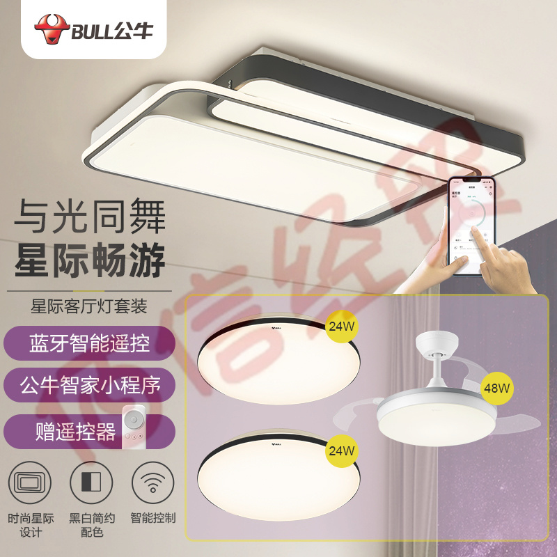 公牛(BULL)LED吸頂燈X36星際MX-M130B-CD無(wú)線遙控/小程序智能控制/無(wú)極調(diào)光 :客廳燈+燦軒臥室燈*2+吊扇 自營(yíng)
