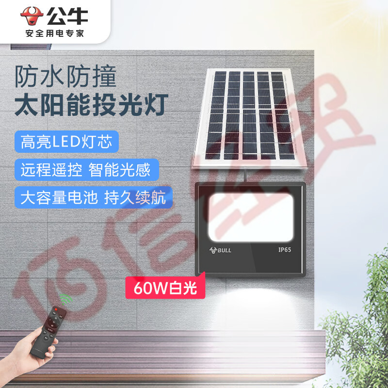 公牛 太陽(yáng)能投光燈 戶外路燈LED高亮防水防撞投光燈照明壁燈廣場(chǎng)燈 智能光控-60W-6500K MG-B060A-AE 自營(yíng)