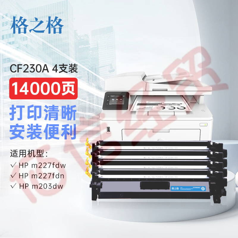 格之格cf230a硒鼓 適用惠普m227fdw硒鼓 m227fdn m227sdn m203dw m203dn打印機粉盒 m227fdw墨盒大容量四支裝 自營