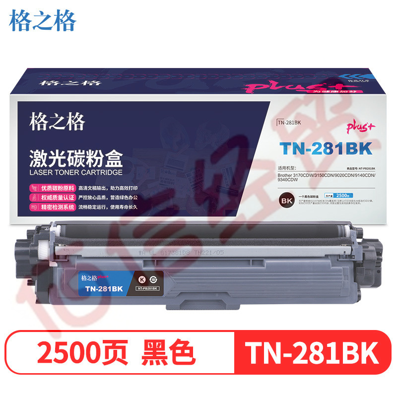 格之格TN-281BK碳粉盒NT-PB281BKplus+適用兄弟3170CDW 3150CDN 9020CDN 9140CDN 9340CDW打印機粉盒 自營