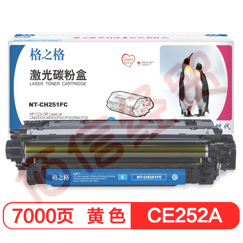 格之格CE252A硒鼓NT-CH252FY適用惠普CP3525n CP3525dn CP3520 CM3530fs CM3530黃色大容量打印機(jī)硒鼓 自營