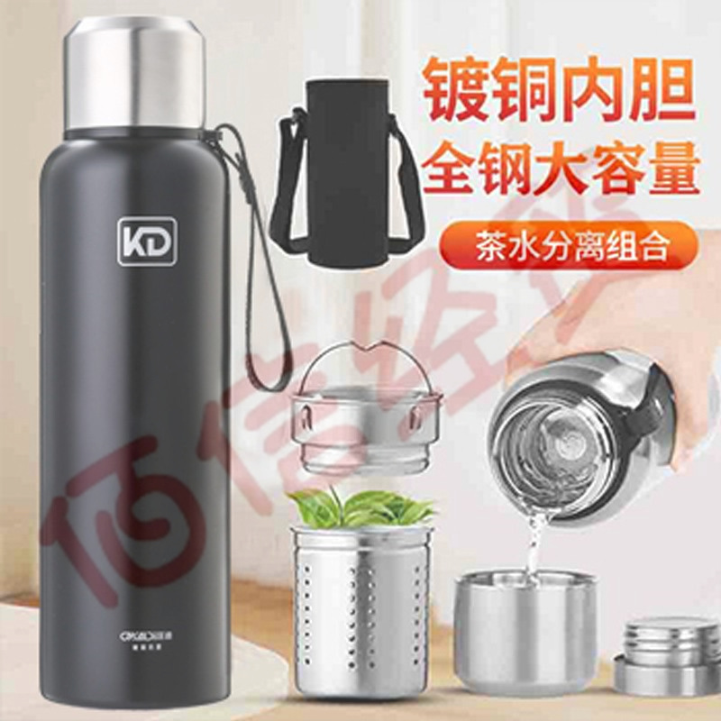 匡迪(DKADI) 匡迪保溫杯水杯不銹鋼真空保溫杯高真空頭內(nèi)304不銹鋼手提繩保溫杯男女 金色 450ml