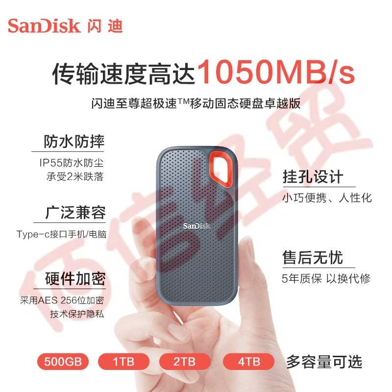 閃迪(SanDisk)1TB Nvme 移動固態(tài)硬盤(PSSD)E61至尊極速卓越版 ssd 傳輸速度1050MB/s IP55等級三防保護