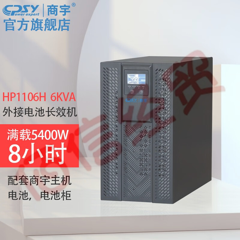 商宇UPS不間斷電源HP1106H單進單出6KVA/5.4KW機房服務器應急電源30分鐘-8小時套餐 續(xù)航8小時32節(jié)商宇100AH蓄電池A32電池柜 自營