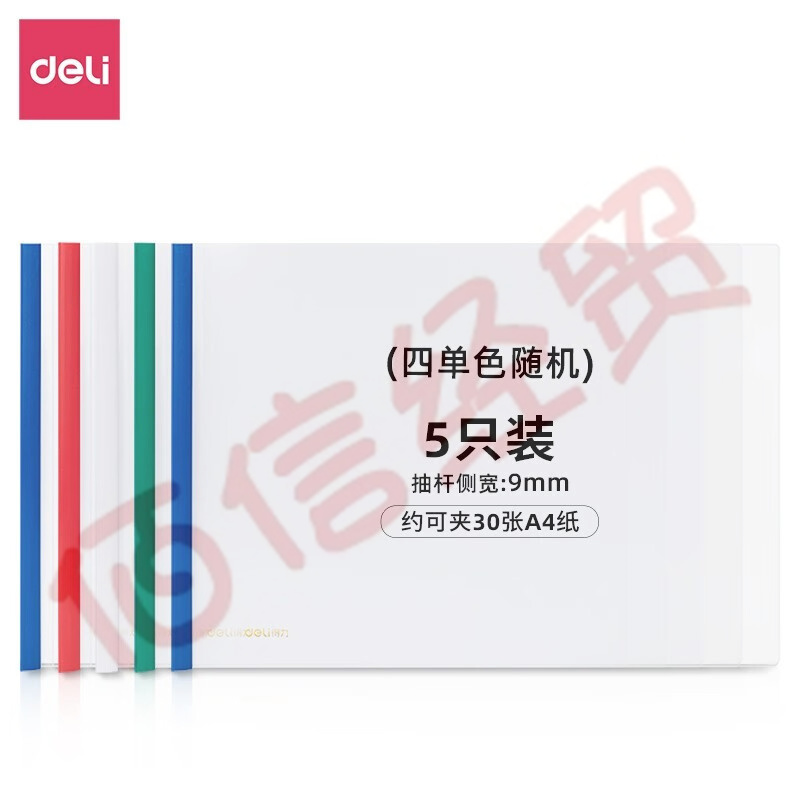 得力(deli)橫款抽桿報(bào)告夾5只裝透明資料夾塑料拉桿夾防水耐磨加寬加厚收納夾學(xué)生試卷夾 顏色隨機(jī) A4/可夾30張-5只裝 63101 自營(yíng)