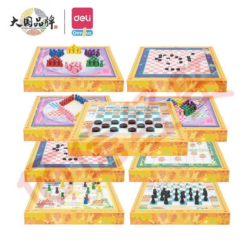 得力(deli)9合一圍棋中國象棋五子棋跳棋男女孩玩具多功能桌游親子YW108紙質(zhì)多功能游戲棋 自營