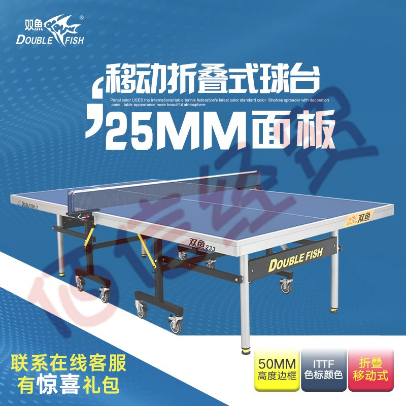 雙魚(DOUBLE FISH) 乒乓球桌233大賽標(biāo)準(zhǔn)ITTF認(rèn)證乒乓球臺(tái)室內(nèi)可移動(dòng)折疊乒乓球案子 自營