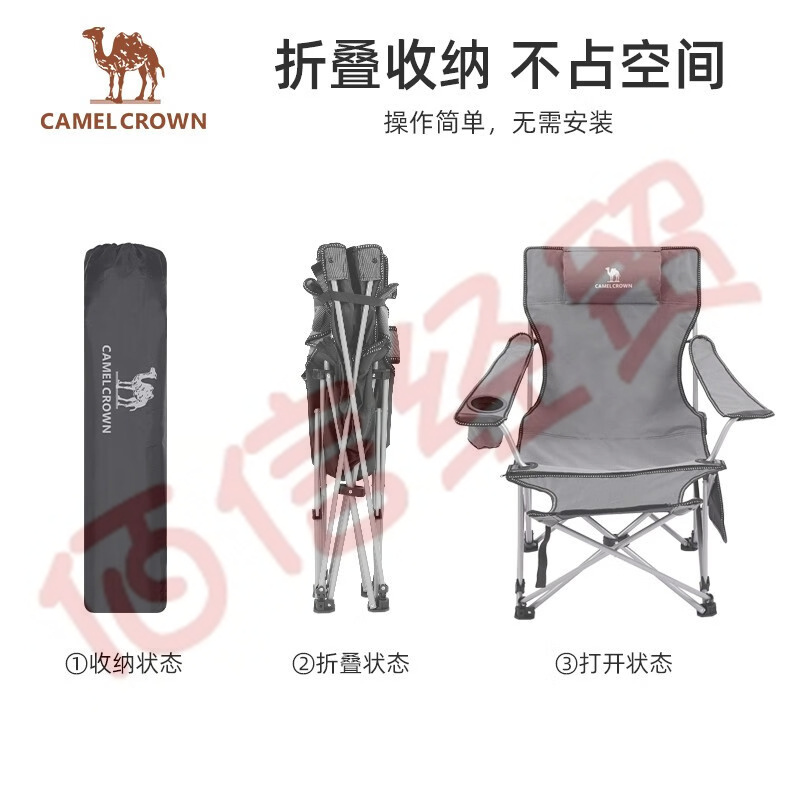 駱駝CAMELCROWN戶外折疊椅便攜午休床輕釣魚椅子沙灘露營家用陪護床多功能躺椅 1J32266837,灰色(4檔調(diào)節(jié)椅) 自營