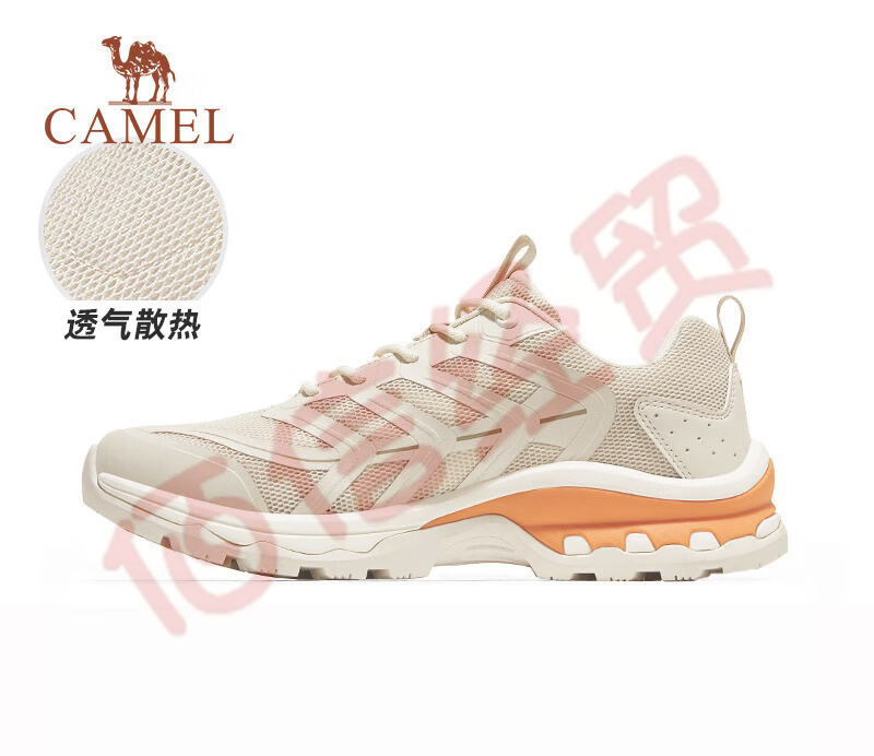 駱駝(CAMEL)戶外登山鞋女士2023春季款防滑耐磨運動輕便透氣徒步鞋男鞋 F13S693003,米色/桔紅,男 44 自營