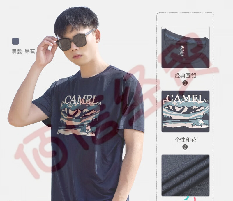 駱駝(CAMEL)運(yùn)動(dòng)T恤圓領(lǐng)男款短袖時(shí)尚印花舒適休閑打底上衣女款 7C82251001,墨藍(lán),男 M 自營