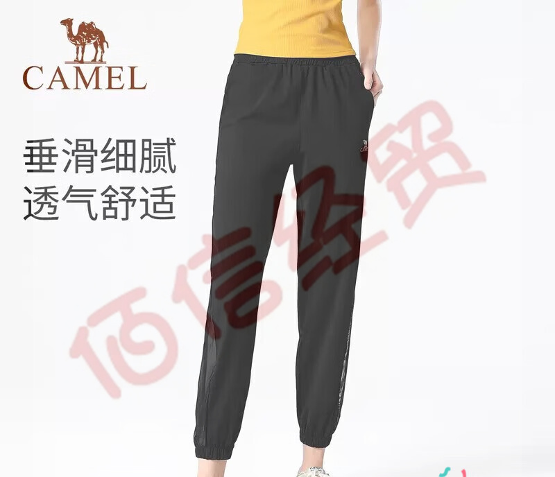 駱駝(CAMEL)運(yùn)動(dòng)褲女寬松束腳夏季薄款跑步褲子高腰瑜伽褲長(zhǎng)褲透氣健身褲 Y23BAFU376,幻影黑 M 自營(yíng)